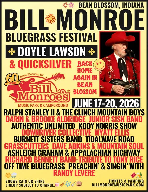 Find more information about tickets, schedules, full lineups, camping information, and more at the Bill Monroe Bean Blossom Bluegrass Festival website.