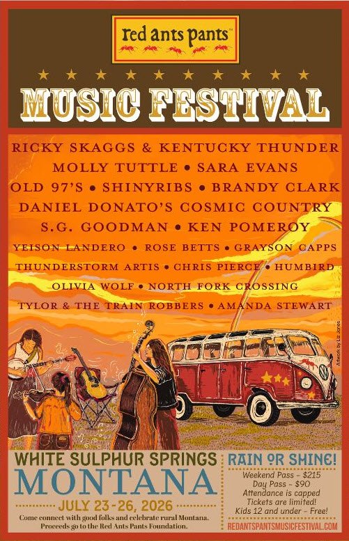 Find more information about tickets, schedules, full lineups, camping information, and more at the Red Ants Pants Festival website.